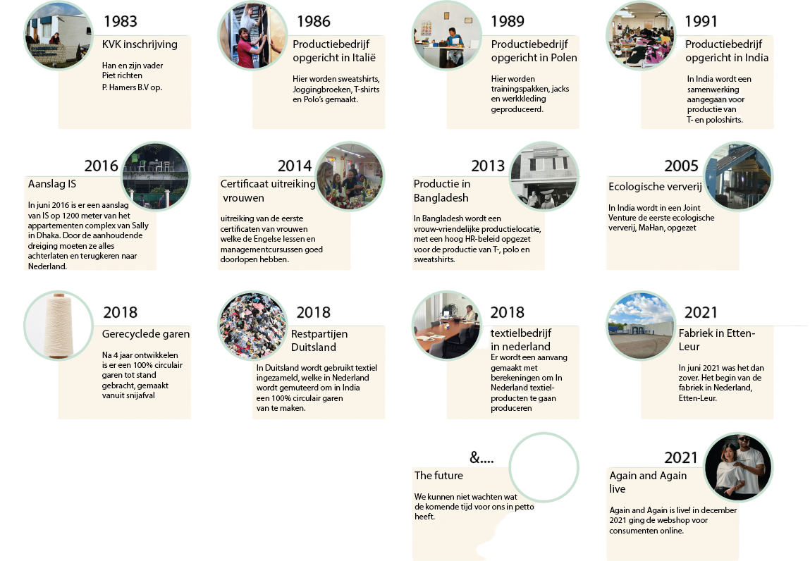 He comes from Loon op zand, which was known for its shoe production in the 1950s and 1960s. After about three years of trading and importing, he learnt that his manufacturer in Italy was closing its production facility. This gave him the opportunity to take over parts of this company and he set up his own production company for jogging suits, among other things.